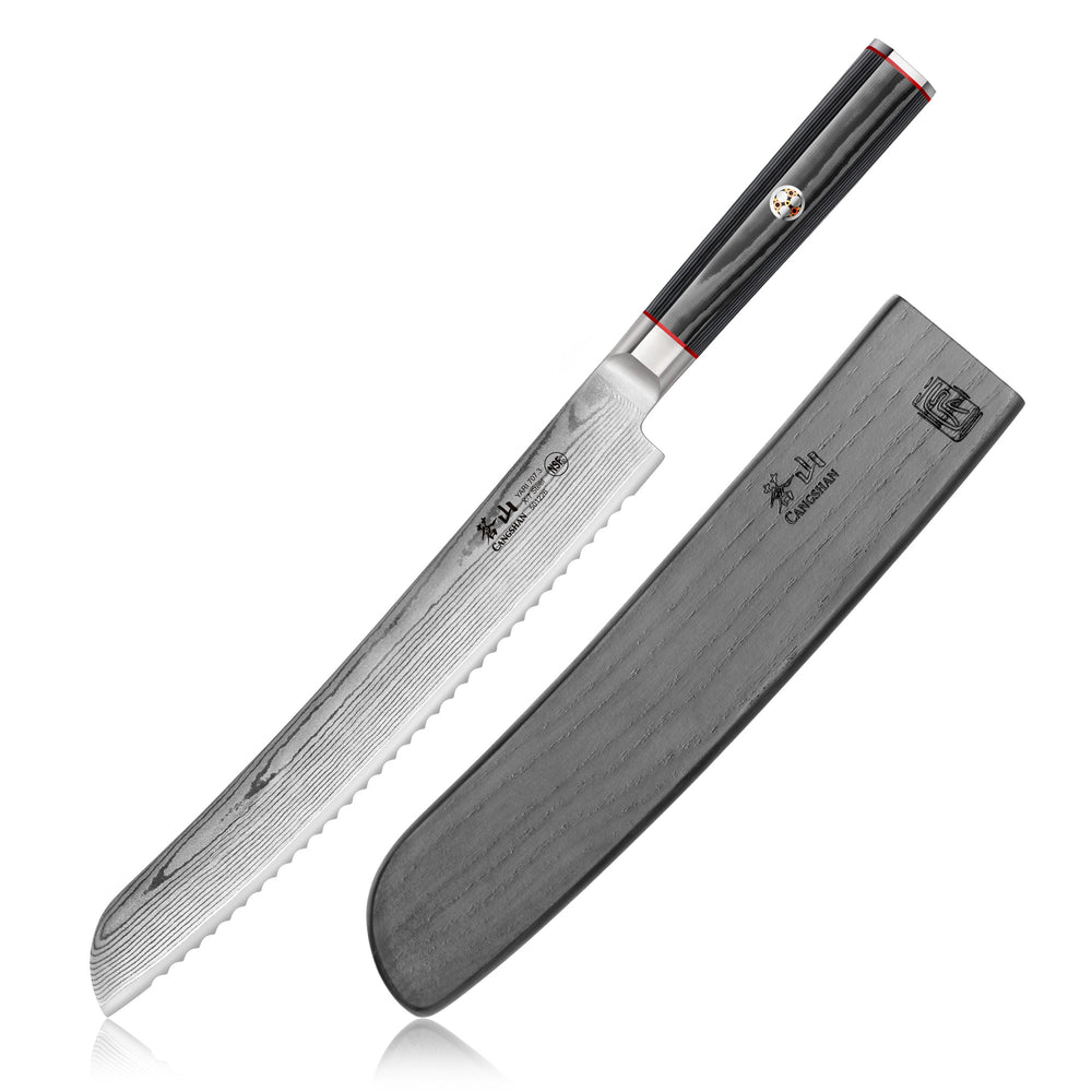 YARI Series 9-Inch Bread Knife with Sheath, X-7 Damascus Steel, 501226