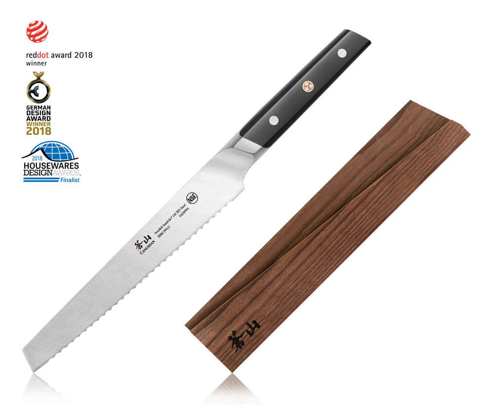 TC Series 8-Inch Bread Knife with Ash Wood Sheath, Forged Swedish 14C28N Steel, 1021004