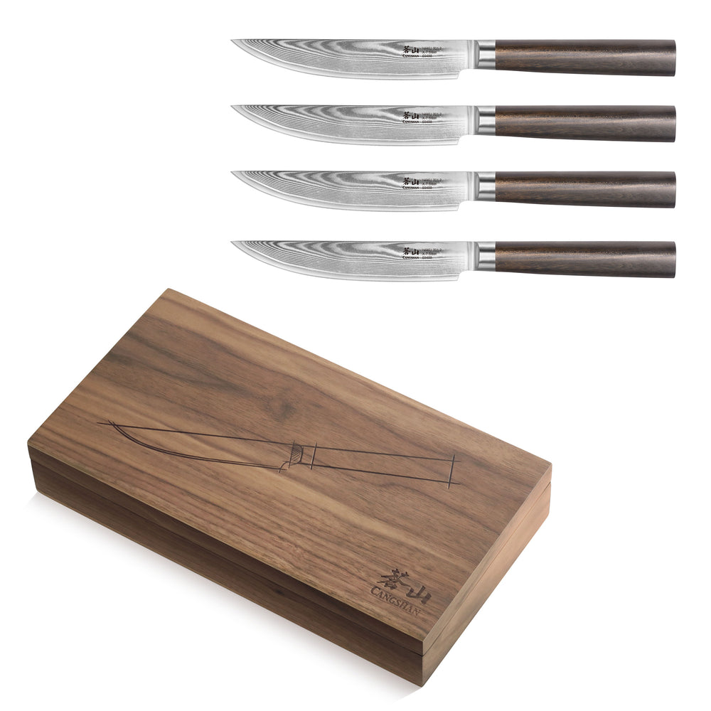 HAKU Series 4-Piece Fine-Edge Steak Knife Set with Walnut Box, Forged X-7 Damascus Steel, 501141