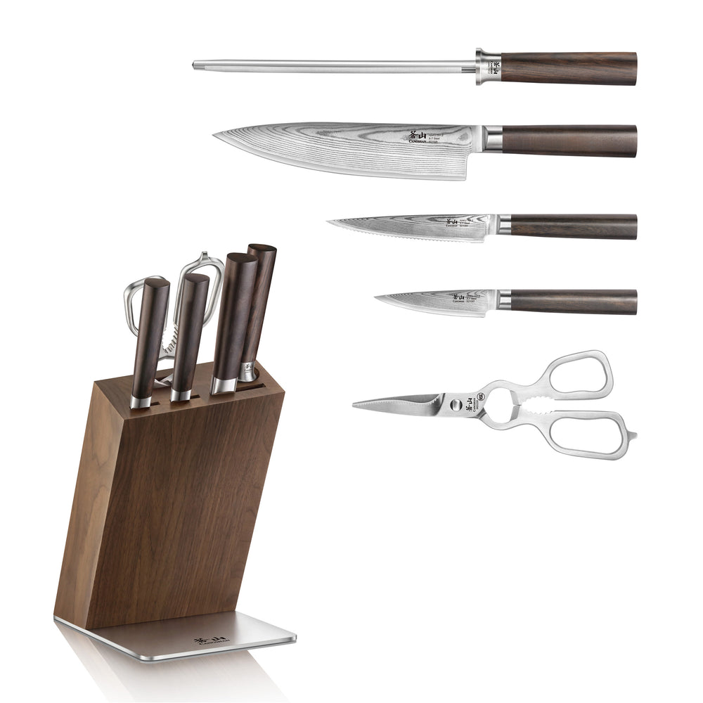 HAKU Series 6-Piece Knife Block Set, Forged X-7 Damascus Steel, HUA Walnut Block, 501189