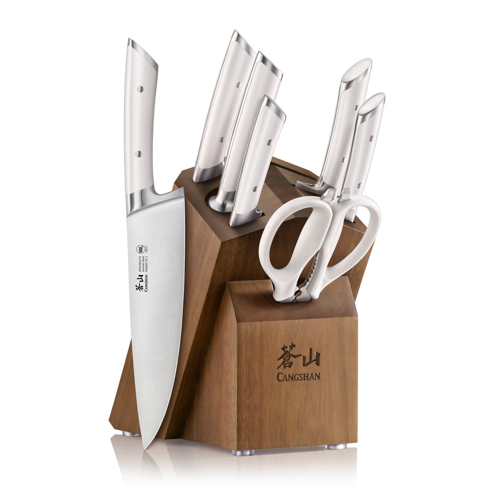 RAINIER Series 8-Piece Knife Block Set, Forged German Steel, Acacia Block
