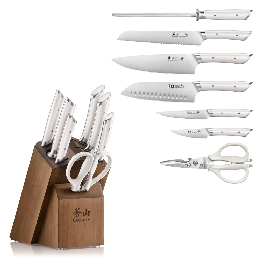 HELENA Series 10-Piece Knife Block Set, Forged German Steel, Acacia Block