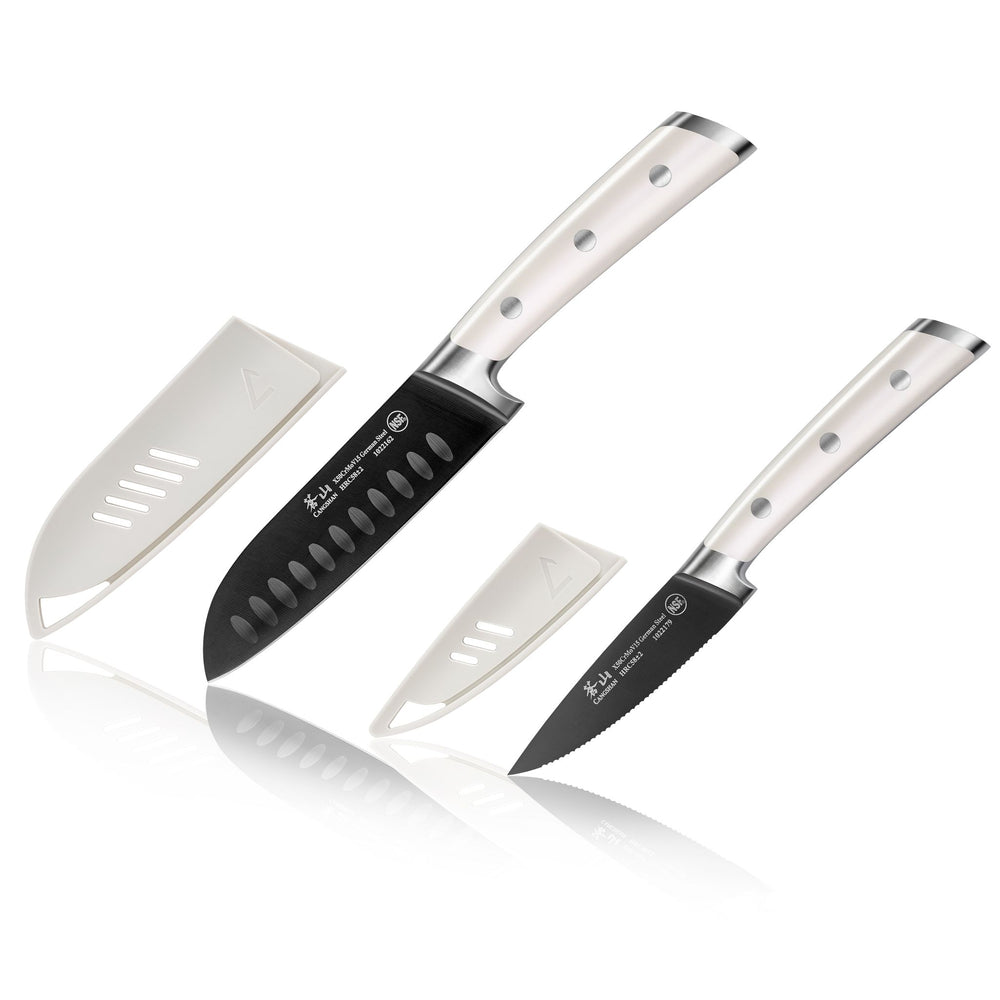 S+ Series 2-Piece Titanium Coated Santoku Starter Knife Set with Sheaths, Forged German Steel