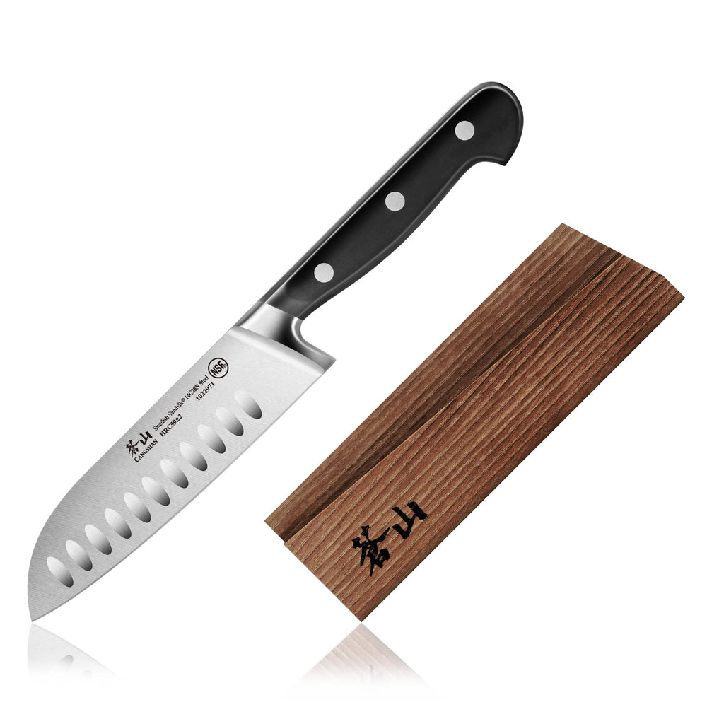 TS Series 5-Inch Santoku Knife with Wood Sheath, Forged Swedish 14C28N Steel, 1020823